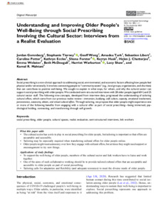 Understanding and Improving Older People's Well-Being through Social Prescribing Involving the Cultural Sector: Interviews from a Realist Evaluation.