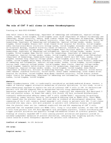 | Title: | The role of CD8+ T cell clones in immune thrombocytopenia |