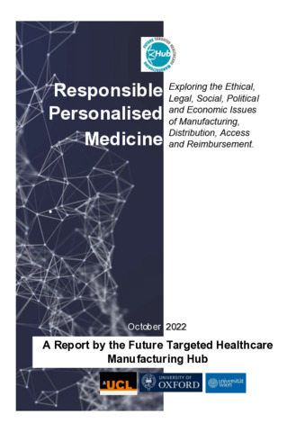 | Title: | Responsible Personalised Medicine: Exploring the Ethical, Legal, Social, Political and Economic Issues of Manufacturing, Distribution, Access and Reimbursement. A Report by the Future Targeted Healthcare Manufacturing Hub |
