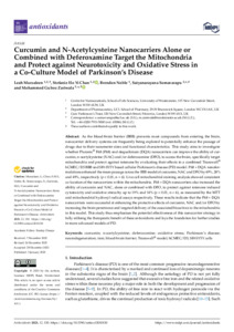 Curcumin and N-Acetylcysteine Nanocarriers Alone or Combined with Deferoxamine Target the Mitochondria and Protect against Neurotoxicity and Oxidative Stress in a Co-Culture Model of Parkinson’s Disease.