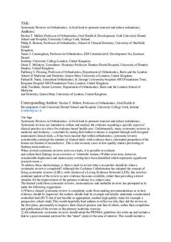 Systematic Reviews in Orthodontics - A fresh look to promote renewal and reduce redundancy.pdf - Accepted Version Download (126kB) | Preview |