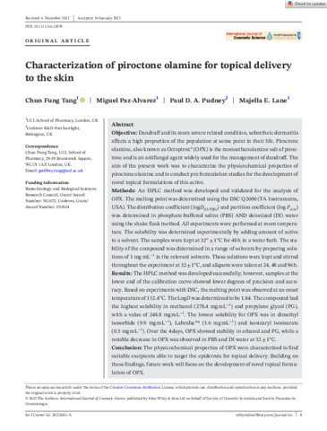 Title: | Characterisation of piroctone olamine for topical delivery to the skin |