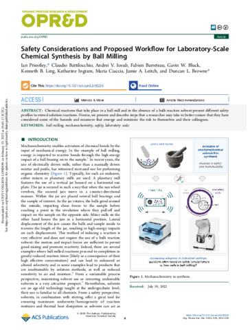 Safety Considerations and Proposed Workflow for Laboratory-Scale Chemical Synthesis by Ball Milling.