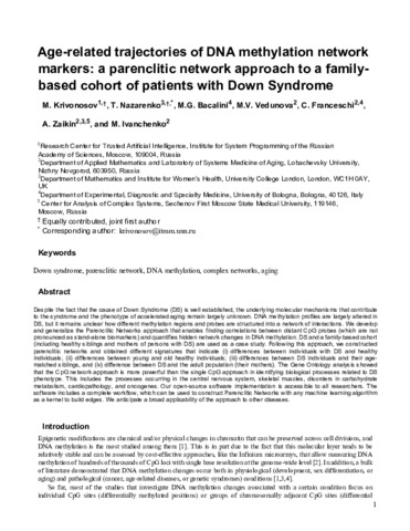 | Keywords: | Down Syndrome, Parenclitic network, DNA methylation, Complex networks, Aging |