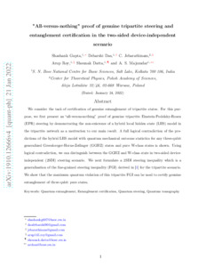 “All-versus-nothing” proof of genuine tripartite steering and entanglement certification in the two-sided device-independent scenario.
