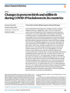 Title: | Changes in preterm birth and stillbirth during COVID-19 lockdowns in 26 countries |