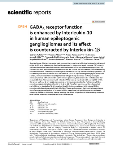 GABA(A) receptor function is enhanced by Interleukin-10 in human epileptogenic gangliogliomas and its effect is counteracted by Interleukin-1 beta.
