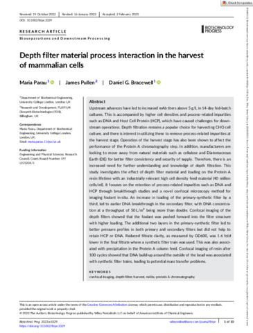 Bracewell_Depth filter material process interaction in the harvest of mammalian cells_VoR.pdf Download (15MB) | Preview |
