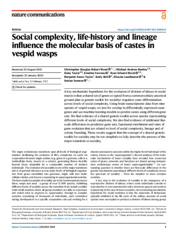 Title: | Social complexity, life-history and lineage influence the molecular basis of castes in vespid wasps |