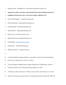 Apparent prevalence, diversity, and associated lesions of peri-orbital nematodes in a population of barred owls (Strix varia) from Northern California, USA.