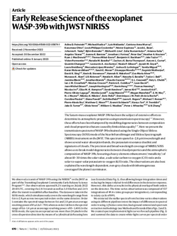 | Title: | Early Release Science of the exoplanet WASP-39b with JWST NIRISS |