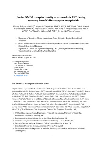 In Vivo N-Methyl-d-Aspartate Receptor (NMDAR) Density as Assessed Using Positron Emission Tomography During Recovery From NMDAR-Antibody Encephalitis.pdf Download (630kB) | Preview |