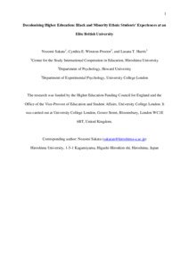 Decolonising higher education: Black and Minority Ethnic students’ experiences at an elite British university.