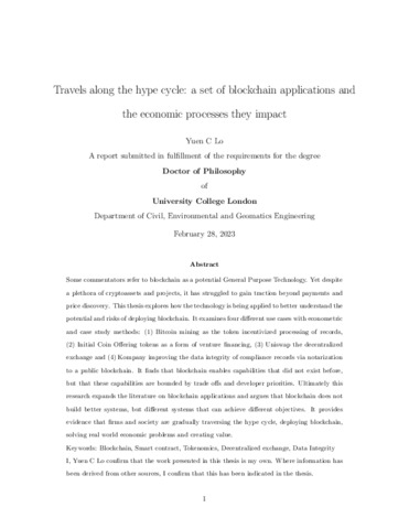 | Title: | Travels along the hype cycle: a set of blockchain applications and the economic processes they impact |