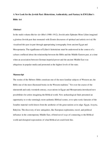 Title: | A New Look for the Jewish Past: Historicism, Authenticity, and Fantasy in E. M. Lilien’s Bible Art |