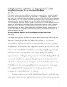 Title: | Making Sargon Great Again: Reuse and Reappropriation of Ancient Mesopotamian Imagery in Fan-Art of the Online Right |