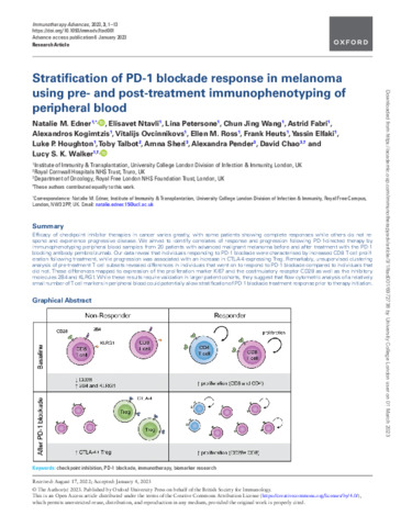 | Title: | Stratification of PD-1 blockade response in melanoma using pre- and post-treatment immunophenotyping of peripheral blood |