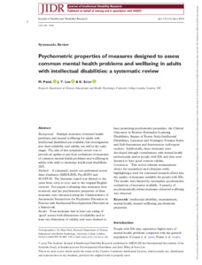 Title: | Psychometric properties of measures designed to assess common mental health problems and wellbeing in adults with intellectual disabilities: a systematic review |