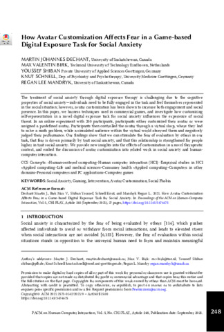 Title: | How Avatar Customization Affects Fear in a Game-based Digital Exposure Task for Social Anxiety |