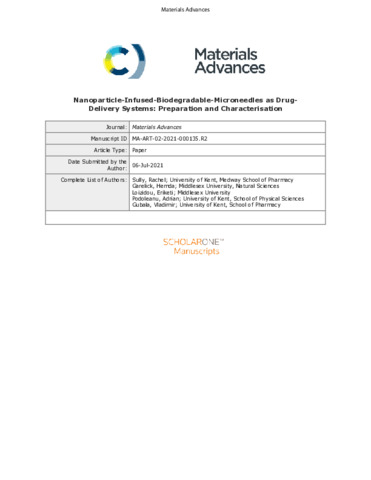 Title: | Nanoparticle-infused-biodegradable-microneedles as drug-delivery systems: preparation and characterisation |