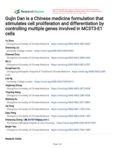 Title: | Gujin Dan is a Chinese medicine formulation that stimulates cell proliferation and differentiation by controlling multiple genes involved in MC3T3-E1 cells |