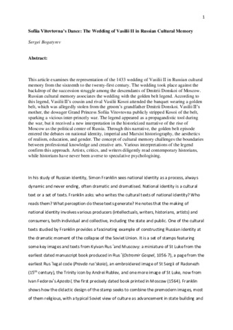 Title: | Sofiia Vitovtovna's Dance: The Wedding of Vasilii II in Russian Cultural Memory |