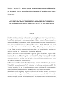 Advanced therapies, hospital exemptions & marketing authorizations: the UK’s emerging regulatory framework for point-of-care manufacture.