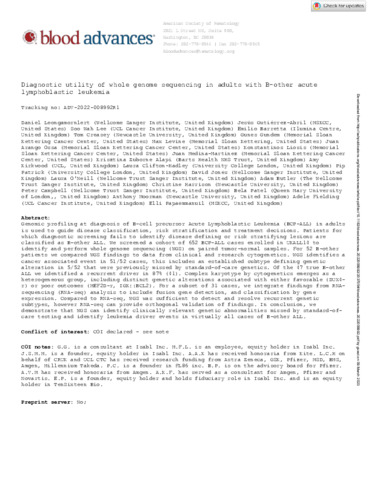 Diagnostic utility of whole genome sequencing in adults with B-other acute lymphoblastic leukemia.