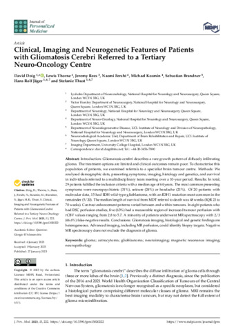 Clinical, Imaging and Neurogenetic Features of Patients with Gliomatosis Cerebri Referred to a Tertiary Neuro-Oncology Centre.