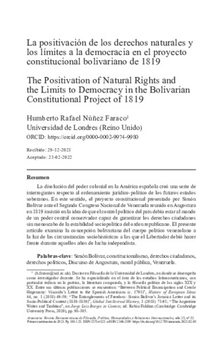 Title: | La positivación de los derechos naturales y los límites a la democracia en el proyecto constitucional bolivariano de 1819 |