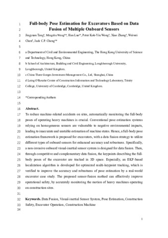 | Title: | Full-body pose estimation for excavators based on data fusion of multiple onboard sensors |