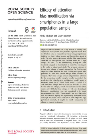 Title: | Efficacy of attention bias modification via smartphones in a large population sample |