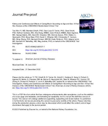 Title: | Kidney and Cardiovascular Effects of Canagliflozin According to Age and Sex: A Post Hoc Analysis of the CREDENCE Randomized Clinical Trial |