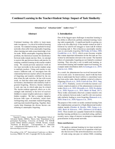 Continual Learning in the Teacher-Student Setup: Impact of Task Similarity.