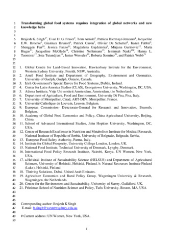 | Title: | Food systems transformation requires science–policy–society interfaces that integrate existing global networks and new knowledge hubs |