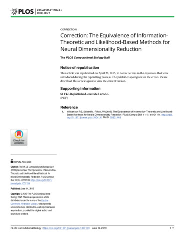 Title: | Correction: The Equivalence of Information-Theoretic and Likelihood-Based Methods for Neural Dimensionality Reduction |