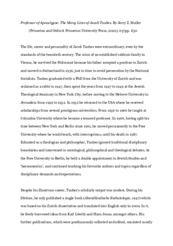 Title: | Professor of Apocalypse: The Many Lives of Jacob Taubes |