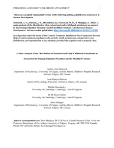 Title: | A meta-analysis of the distribution of preschool and early childhood attachment as assessed in the strange situation procedure and its modified versions |
