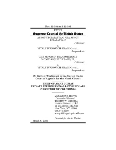 Title: | Brief of Amici Curiae Private International Law Scholars in Support of Petitioner, Ashot Yegiazaryan, aka Ashot Egiazaryan v Vitaly Ivanovich Smagin, et al |
