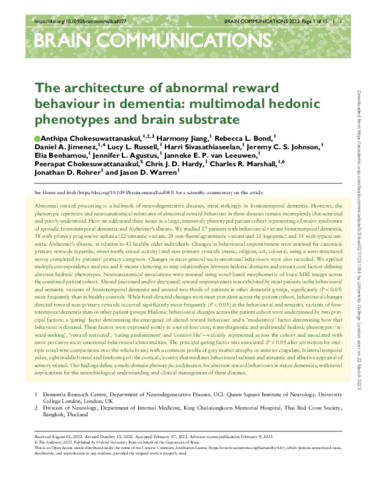 | Title: | The architecture of abnormal reward behaviour in dementia: multimodal hedonic phenotypes and brain substrate |