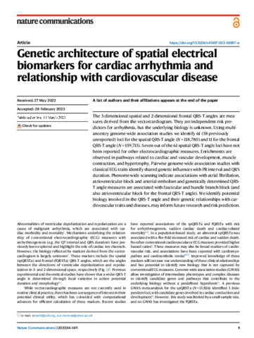 Title: | Genetic architecture of spatial electrical biomarkers for cardiac arrhythmia and relationship with cardiovascular disease |