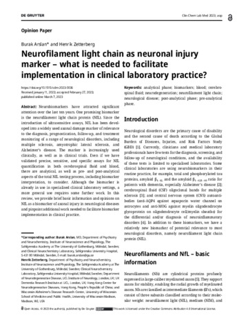 Title: | Neurofilament light chain as neuronal injury marker - What is needed to facilitate implementation in clinical laboratory practice? |