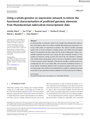 Title: | Using a whole genome co-expression network to inform the functional characterisation of predicted genomic elements from Mycobacterium tuberculosis transcriptomic data |