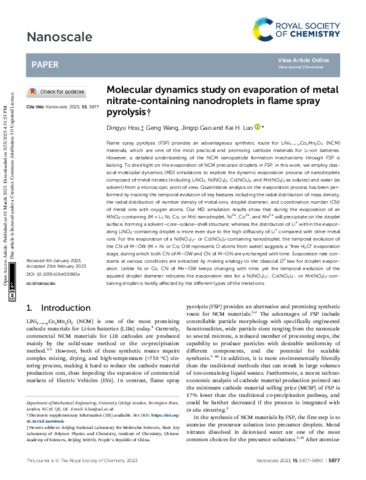 Title: | Molecular dynamics study on evaporation of metal nitrate-containing nanodroplets in flame spray pyrolysis |