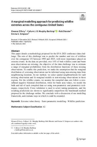 | Title: | A marginal modelling approach for predicting wildfire extremes across the contiguous United States |