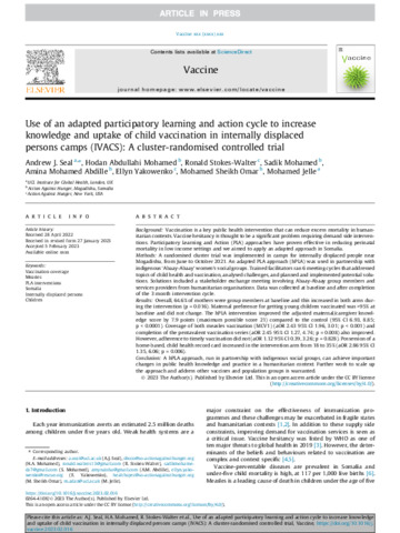 Use of an adapted participatory learning and action cycle to increase knowledge and uptake of child vaccination in internally displaced persons camps (IVACS): A cluster-randomised controlled trial.