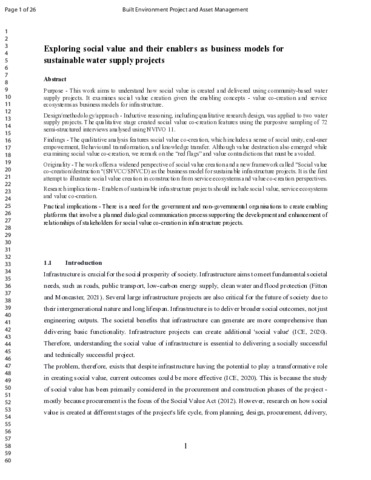 Title: | Exploring social value and their enablers as business models for sustainable water supply projects |