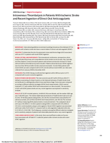 | Title: | Intravenous Thrombolysis in Patients With Ischemic Stroke and Recent Ingestion of Direct Oral Anticoagulants |