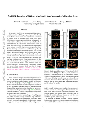 Title: | 3INGAN: Learning a 3D Generative Model from Images of a Self-similar Scene |