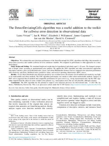 Title: | The DetectDeviatingCells algorithm was a useful addition to the toolkit for cellwise error detection in observational data |